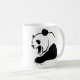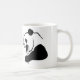 caneca branca com o gráfico da panda em preto e branco.