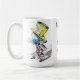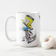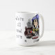 Esta caneca louca para fãs das aventuras de Alice no país das maravilhas por Lewis Carroll caracteriza duas das ilustrações famosas de John Tenniel do Hatter louco. Em um lado da caneca está sentando-se para baixo ao chá com o dormouse sonolento por seu lado. O Hatter louco está vestindo seus chapéu alto, camisa necked alta e laço grande com teste padrão de bolinhas enquanto acena sua mão no ar e fala muito ar quente e envia o dormouse pequeno ao sono. Na mesa do tea party na frente do twosome são dois copos e pires e uma placa vazia. No outro lado da caneca é uma outra ilustração do Hatter louco, esta vez onde mordeu um pedaço fora de seu sanduíche e do copo de chá. Em ambas as ilustrações eu adicionei pouca cor à cena. No centro da caneca são as palavras, nós são tudo loucas aqui. Você pode mudar o texto ao terno usando o botão da personalização.