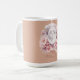 Surpreenda a Mamãe com esta elegante caneca de cerâmica grande de 15oz com rosas cor-de-rosa suaves e uma lua cheia sonhadora em um fundo quente de rosa poeira. Um presente lindo e sincero para o Dia das Mães que ela vai adorar usar todas as manhãs.