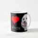Duas fotos de um maltês. O texto lê: "Mim (coração) meu maltês". Grande arte moderna do copo de café para esse amante do cão em sua vida! Presente ideal para o groomer, o veterinário ou o algum outro profissional dos cuidados dos animais de estimação. Vista para adotar um melhor amigo novo? Visite por favor petfinder.com para salvar a vida de um próximo animal do abrigo/salvamento você.