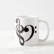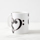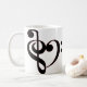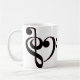 Os Clefs musicais agridem características que um coração formou por um clef de triplo e um clef baixo no preto esboçou no vermelho.