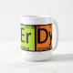 Tenha a caneca de café a mais nerdiest onde quer que você vai com o "nerdy" soletrado para fora com elementos da mesa periódica.