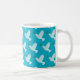 Caneca Azul com padrões de Dove. Tradicionalmente, os pombos simbolizam a paz e boas notícias. Que esta caneca seja uma bênção para quem a estiver usando, seja você mesmo ou seus entes queridos!