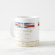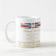 Comemore o nascimento do membro o mais novo da família real, príncipe de Cambridge, com esta caneca decorada com uma fita vermelha, branca e azul elegante com falso os enfeites de cristal do coração e do ouro. Esta caneca comemorativa é projetada com a data de nascimento da princesa pequena, o peso, e o tempo do nascimento.
