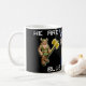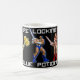 Caneca retro do blizzard dourado do machado connosco estamos procurando o texto azul das poções