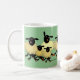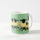 Muitos carneiros preto e branco dos desenhos animados bonitos em uma caneca verde. Mude a cor do fundo para personalizá-lo para serir seu gosto.