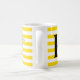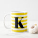 Letra alfabética K com caracteres positivos começando por K contra listras amarelas.