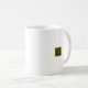 Ouro clássico e caneca minimalista verde. Pequeno monograma em texto formal dentro de uma borda quadrada.