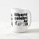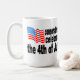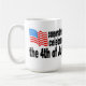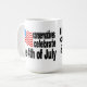 Em um lado da caneca, uma bandeira americana interrompe o sentimento que os conservadores comemoram 4o julho, quando no outro lado um "tio Sam gigante" sleeve e acusando pontos do dedo a um contribuinte pequeno que indica que os liberais comemoram o dia do imposto