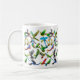 O design de muitos papagaios dos trabalhos artísticos originais do desenhista Carolyn McFann do estúdio de ronrom de dois gatos imprimiu em uma caneca de café da qualidade para proprietários e fãs do papagaio.