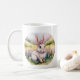 Isto é uma caneca com um belo coelho sentado nela. Tenha um dia feliz.