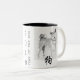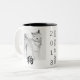Cubra a pintura da lavagem do cão de Shiba Inu com o ideograma do cão preto. Caneca customizável do dois-tom (modelo n°3) com ano e texto. O meio "cão" do caráter chinês simplesmente. Aperfeiçoe desejando o ano novo chinês feliz 2018 para todos ou o aniversário (pessoas nascidas no ano do cão). ----- "O cão (狗) é um do ciclo de 12 anos dos animais que aparecem no zodíaco chinês relativo ao calendário chinês. O ano do cão é associado com o 戌 terrestre do símbolo do ramo. O 狗 do caráter refere o animal real quando o 戌 referir o animal do zodíaco. (...) As pessoas nascidas dentro destas escalas da data podem ser ditas ter sido nascidas no "ano do cão", ao igualmente carregar o seguinte sinal elementar: