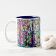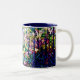 Design do vitral em cores ricas nesta caneca 15 0z. Se você olha pròxima, você verá que as árvores altas abrem para fora a um prado.