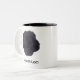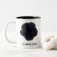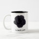 Caneca frente e verso com logotipo da banda em um rosa do lado e do preto com frase gaélica "é bom comigo" no outro.
