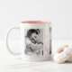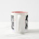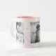 A caneca fotográfica com borda decorativa tem espaço para três das suas fotografias favoritas. Cada fotografia é emoldurada com branco e há um fundo temático estrela cadente. Mostrada em branco com dentro cor-de-rosa e fotografias realçadas a preto e branco. HAMbyWhiteGlove aka HAMbWG