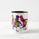 Três aves selvagens, loucas, fedorentas, a vestir penas, a casaco tuxedo, coloridos, chapéus de topo, coletes e gravatas arcos em laranja, roxo gótico e rosa quente. Vestidos a boogie, estes não são seus passarinhos de beija-flores de jardim. Poster gráfico divertido. Artista, Margaret Loftin Whiting.