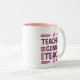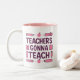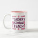Uma caneca incrível com a citação "Professores vão ensinar" cercada por material escolar