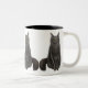 Design original das belas artes de gatos pretos em uma qualidade e da caneca customizável para amantes do gato pelo desenhista Carolyn McFann do estúdio de ronrom de dois gatos.