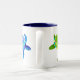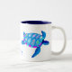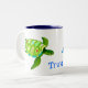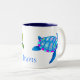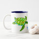 Caneca colorida, com os gráficos de tartarugas pintadas no azul e no verde. Personalize o texto para personalizar esta caneca bonito do café/cacau.