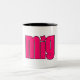 Logotipo cor-de-rosa do MIG em uma caneca branca brilhante com interior preto. Esta é parte de nosso design de vencimento do t-shirt, agora no formulário da caneca!