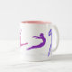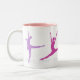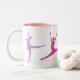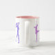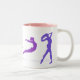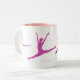 Dançarinos graciosos jete através de sua caneca de café em silhuetas cor-de-rosa e roxas. Presente do considerando ou de aniversário para o balé, moderno, o jazz, os dançarinos e os professores.