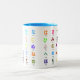 Caneca branca com todos os 46 símbolos japoneses dos hiragana. Pronunciação no alfabeto abaixo de cada caráter.