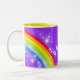 Arco-íris brilhante e colorido "que seus" miúdos conhecidos agridem. Presente perfeito para uma criança vibrante. A caneca lê: Melinda ou personaliza esta caneca com o nome de sua escolha até 7 letras. Caneca projetada exclusivamente por Sarah Trett.