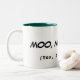 Clássico, 11 onças. caneca (interior do verde de caçador, exterior do branco) com citações engraçadas da vaca.