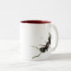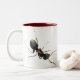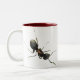 Esta caneca tem duas formigas maiores que a vida rastejando pela xícara.