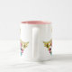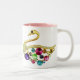 Cor-de-rosa na moda e o branco dois tonificam a caneca com os dois bonitos, pavões digitais coloridos lunáticos e bonitos do ouro das jóias. Um presente à moda, elegante, chique, feminino da forma para mulheres, adolescentes e miúdos e qualquer um que ama pavões. Note por favor: Todos os produtos no Web site de Zazzle têm imagens impressas do plano. Se você precisa algum auxílio que personaliza seu produto me contacta por favor através de minha loja e eu estarei feliz ajudar.