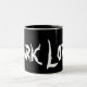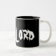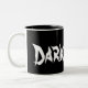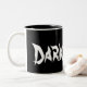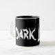 Caneca preta que diz o senhor escuro na rotulação branca com uma borda branca.