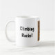 Imagem ocular do equipamento de alpinistas num conselho fora do compro de engrenagens de alpinismo. Capacete vermelho e gelo preto entre uma tela colorida de carabineiros. Com o slogan 'Escalando Rochas!', ou escolha 'personalizar' para adicionar o seu.