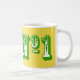 Um presente para a pessoa que é o seu Número Um. Uma caneca que mostra quem é o Número Um para você. Cores verde e amarelo com um estilo de texto decorativo. Numero Uno!