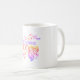 Estou a menopausa quente! Mostre as suas mulheres. Mug mostra uma mulher do alfabeto mucha a remar e diz "Estou com menopausa quente" e é enquadrado com o pergaminho vitoriano.Em cores assombrosas de rosa quente, roxo, amarelo e vermelho.