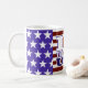 Caneca Eu "Amo" os EUA. Gráficos em camadas formam as estrelas e listras, com o logotipo Eu "Amo" os EUA, esta será sua caneca favorita para sempre.