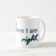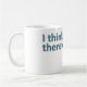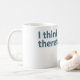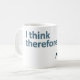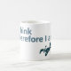 Caneca que caracteriza o design com o texto "que eu penso que conseqüentemente eu sou direito".