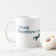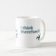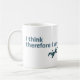 Caneca que caracteriza o design com o texto "que eu penso que conseqüentemente eu sou direito".
