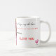 "EU TE AMO" a caneca é uma simples, contudo reconfortante, maneira de dizer a alguém quanto você os ama. Há a ideia que "de algum modo nós dizemos sempre que os menos àqueles nós amam o a maioria." e assim, você pode lembrá-los diários de seu amor com este gesto simples!