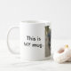 Agrida com um fim acima da foto da cabeça de um emu, com as palavras "olhos fora!" e "esta é MINHA caneca".