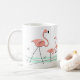 design com um toque retrorreflector, inspirado no século médio, com um grupo de flamingos cor-de-rosa em água aqua contra fundo branco. Um design personalizável para você personalizar com seu próprio texto, imagens e ideias. Uma imagem de arte digital original criada por Jess Perry no QuirkyChic Retro.