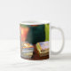 Beba seu café ou chá com uma caneca alaranjada do gato e os todos seus próprios gatos que colocam em torno de olhá-lo bebê-la. O texto diz: A casa é o lugar onde o gato está.