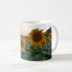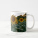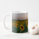 Foto de um campo de girassóis tirados ao anoitecer com o sol a cair sobre o horizonte. Levada no sudoeste da França.