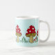 O design tirado mão dos gnomos com seus esconderijos do cogumelo foi feito a varredura em meu computador colore então adicionado. Cogumelos ou Toadstools vermelhos com pontos brancos, as hastes pequenas da grama e gnomos pequenos bonitos.