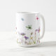 Uma grande caneca com uma vibração de verão de Watercolor flores silvestres e borboletas. Esta caneca pode levá-lo a um humor leve e feliz. Faça como sua caneca do dia a dia ou dê como presente para alguém especial.