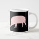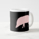 Esta caneca espetacular apresenta um porco rosa estilo cartoon. Tem a cabeça baixa pronta para engolir qualquer comida que encontrar.