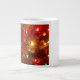 Caneca de café de cor clara exibindo luzes festivas, vermelhas e verdes, de férias com as palavras "Jingle Jingle Jingle"