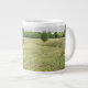 Uma foto de um velho trator em um campo na França rural, cortando feno, numa caneca gigante. Fotografia por ruralfrance.