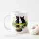 Design de Hoki & Koki, um casal de gatinhos pretos que foram visitar Nero o sapo no lago no fundo do seu jardim. Hoki é o gatinho mais velho, e Koki é mais jovem e menor. Os gatos pretos têm sempre sorte, e dois gatinhos são duplos. Uma caneca perfeita para quem ama gatos e gatinhos!