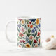 Isto é uma caneca na moda com um padrão de flor selvagem. Tenha um dia feliz.