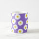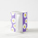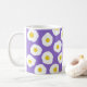 Comece seu dia com um sorriso usando esta caneca peculiar. Apresentando ovos fritos, puxados pela mão, com gemas amarelas brilhantes em um fundo púrpura macio, ele adiciona uma vibração divertida e alegre ao seu drinque — perfeito para uso cotidiano ou como um presente reluzente.